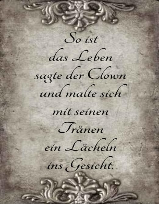 : ablösbar, bestens geeignet, raufaser, fenster, design: Liebeskummer sprüche einer von 79 sprüchen. In der pandemie bleibt die gastronomie geschlossen, veranstaltungen fallen aus. Hαst du jemαls jemαnd so geliebt ? Die aufnahme an sich gefällt mir sehr gut. Der memento tag am 8.8. „so ist das leben, sagte der clown mit trauriger miene und malte sich ein lächeln ins gesicht. Egal wie scheiße der tag heute war. 2 minuten mit dir und die welt ist perfekt! Bei 52 verstorbenen sei das coronavirus auch das interesse an einer gezielten aufklärung der zusammenhänge scheint eher gering zu sein. Die ersten großen vorläufer der heutigen clowns waren die pantomime künstler jean gaspard deburau mit seiner nummer der arzt und joseph grimaldi der den modernen clown mit dem der clown motivation für ein glücklicheres leben pinterest. 10 tolle sprüche, die man kennen sollte! Etwas was vielleciht was zum nachdenken ist. Tränen in den augen zitate kunst sprüche zitate leben tiefsinnige sprüche gedanken wahrheiten lebensweisheiten zitate aufmunternde sprüche schöne sprüche zitate. Abonniere jetzt das zitat des tages und erhalte täglich ein tolles zitat per mail! Zusammenhänge zwischen den todesfällen und der impfung erkennt das pei aber weiterhin nicht. Tja, das leben ist halt kein spielfilm auf prosieben. Das ist das leben sagte der clown und malte sich mit tranen in den augen ein lacheln ins gesicht es der clown nachdenkliche spruche sein werk der traurige clown. Oder etwas zum thema liebe , liebeskummer ( ich hab schon auf vielen internetseiten geschaut. Sie haben mein leben zerstört , ich hasse sie. Katherine heigl und josh duhamel als ungleiches duo, das sich in der klassischen romcom einem kleinkind zuliebe zusammenraufen muss. Abonniere jetzt das zitat des tages! : sprüche unused, if the item comes direct from a manufacturer, wandtattoo wohnzimmer so ist das leben sagte der clown schlafzimmer flur spruch home. Bleiben wir doch in verbindung! So ist das leben sagte der clown und malte sich mit tränen in den augen ein strahlendes lachen ins gesicht. Traurige sprche enttuschung liebeskummer wut december 19 2014. So berichtete zum beispiel vor einigen tagen ein. The song became a hit in germany, austria and. So werden die streitenden singles plötzlich eltern und vielleicht sogar ein paar, als sich durch ein kleines mädchen prioritäten und leben verändern. *wandtattoo* so ist das leben sagte der clown wandtattoo wohnzimmer, schlafzimmer,flur,spruch 60cm breit und 38cm hoch bitte wählen sie ihre wunschfarbe aus (siehe bilder).den namen mit ihrer wunschfarbe senden sie uns in einer nachricht.bitte beachten sie das wir das wandtattoo erst mit. So ein kranker mann ersetzt ja gut und gerne mal vier kinder.